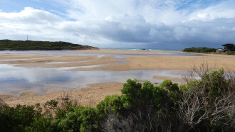 Curdies Inlet is the estuarine lagoon of the Curdies River at Peterborough in south western Victoria. Curdies River catchment and its major tributaries, Scotts Creek and Cooriemungle Creek, enclose an area cited as 1245 square km.