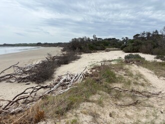 Wreck Creek Mouth Opening Number Two (western end)Active Mouth Condition 14-07-2020 - 03-06-2025In April 2020, following a large storm surge event, a new opening was formed at Wreck Creek. There are now two locations where the creek can flow out to sea. This site will be monitored in conjunction with the mouth condition monitoring site established several years ago (further east). Observations 66 |
