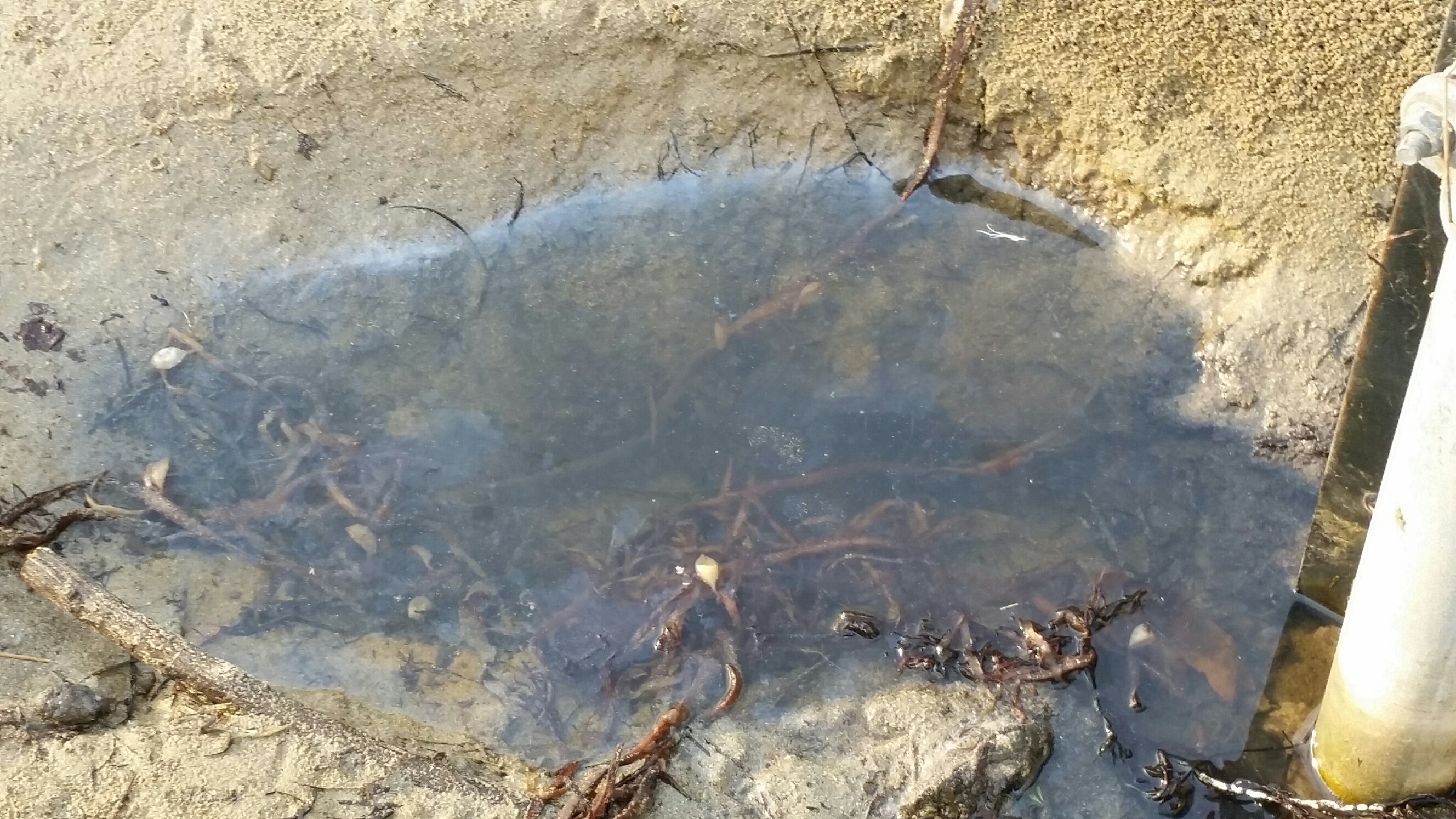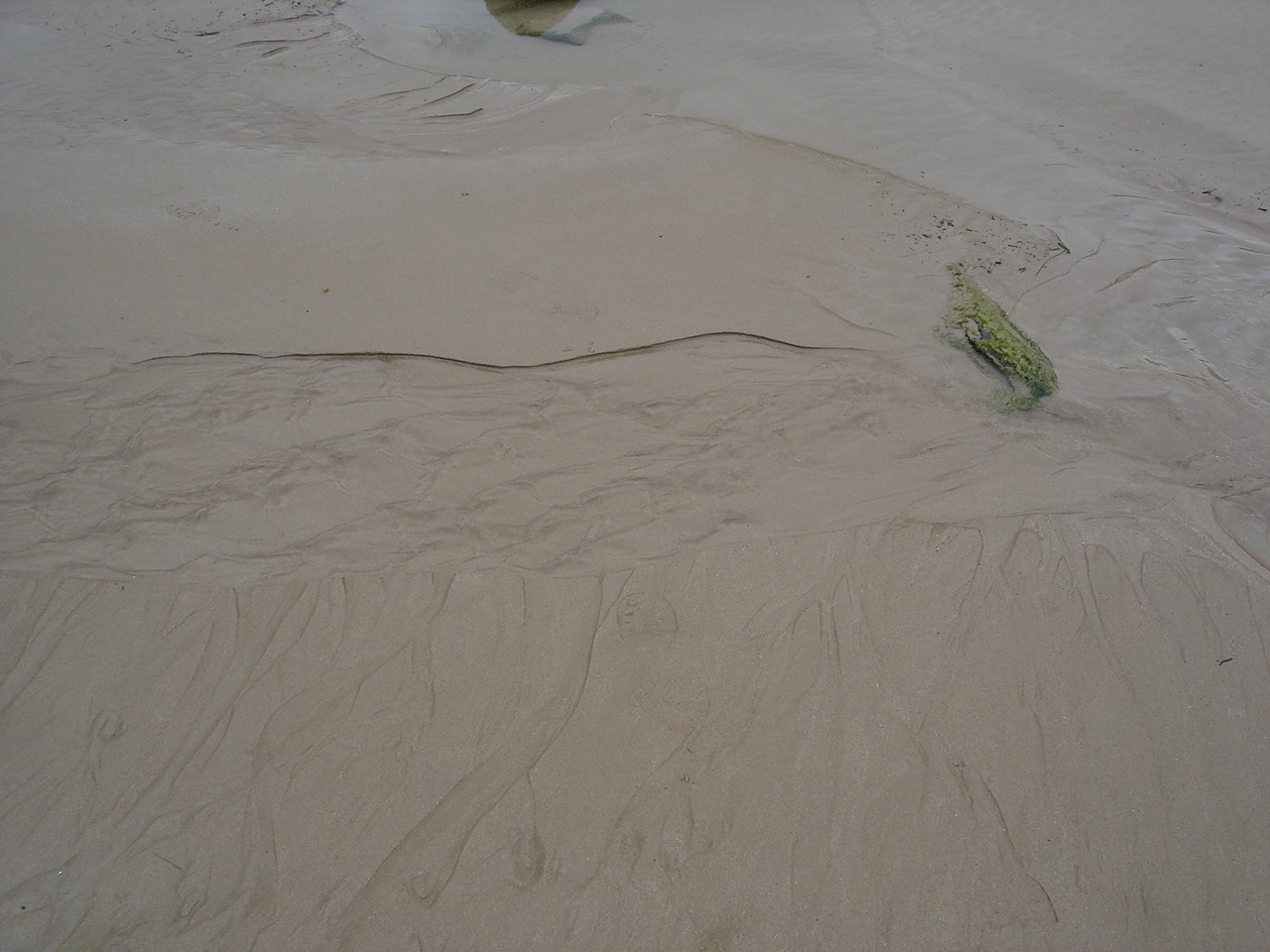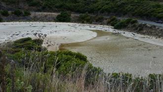 Unusual/Extraordinary occurrence! River flow has been very slight for the last three months generally. There has progressively been very little exchange of water. Today the slight flow seemed not to reach the sea but oozed into the sand. Jenny Cerins |