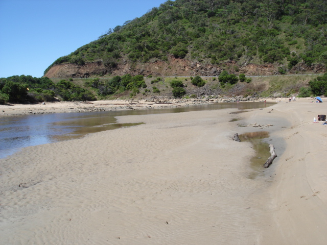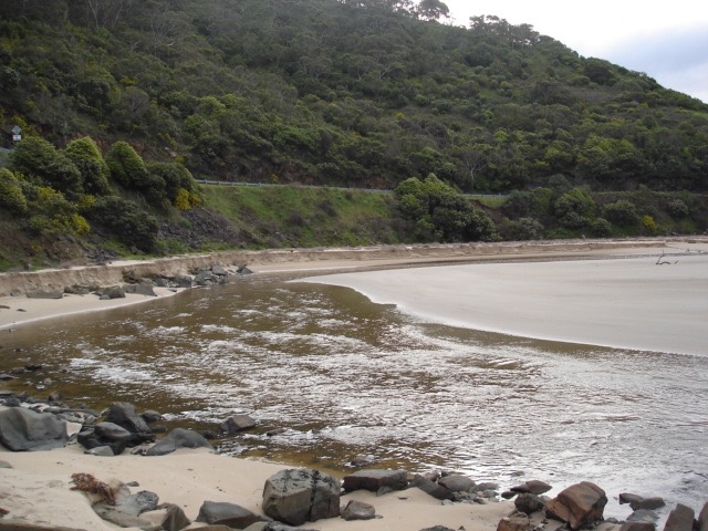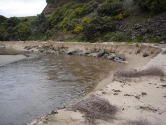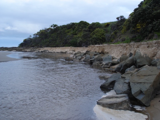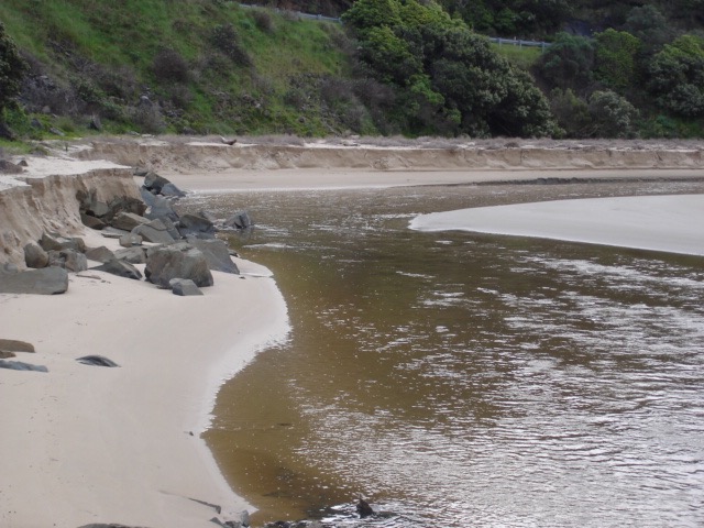 Weather Event Heavy rain caused big flush out. Vertical bank cut through sand on southern side of estuary. Swift flow in quite deep bed cut through sand. Jenny Cerins |