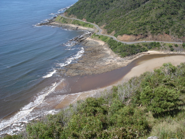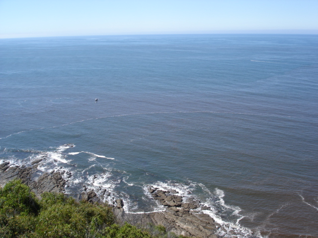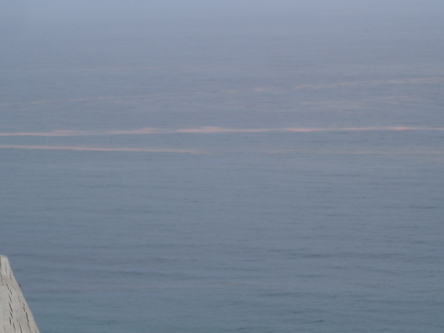 Unusual/Extraordinary occurrence! Pink algael bloom present alomg this section of coast for several days. Photograph taken looking east from Teddy's lookout. Jenny Cerins |