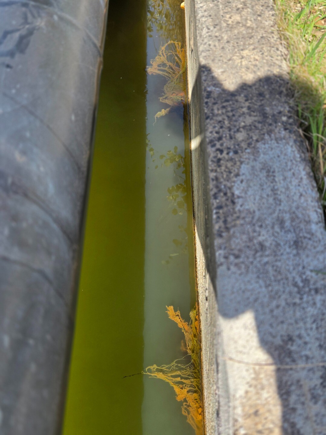 North side of Culvert GREEN ALGAE floating on top, water has a redstain but clear See photos attached Readings on N Side at 0.5m depth pH 3.1 Temp 16 C DO 9.26 mg/l DO% 93 EC 6.4 mS/cm Water is flowing under bridge