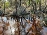 pH 3.1 on North side of culvert a Low flow is evident by movement of flocculated materisl Black sludge about 300mm deep |
