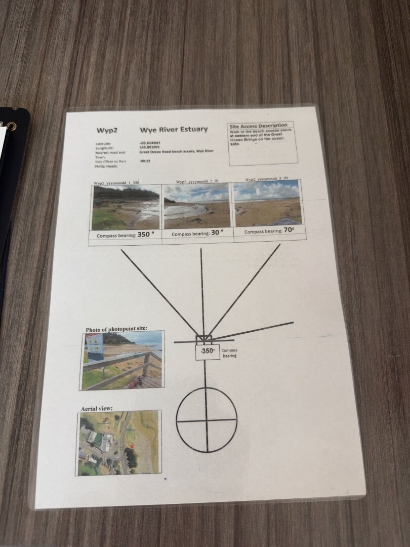 Erina Officer is a volunteer at WW and EW She participated on 4/1/26 at EW and WW Her email is eofficer@mwy.com.au She was was not on the database so I couldn't add her name Can her name please be added. There are two sets of photos for EW. First set in the current location on the steps to the beach. Another set from the new bridge , near where we originally had our photopoint, before the bridge works. Wyp2 , 350, 30, 70, 100 are taken from the steps going down to the beach Another set was taken from the bridge , The compass degrees are not yet specified for the “new” Wye bridge location . These are labelled bridge Wyp1- 1,2,3,4.