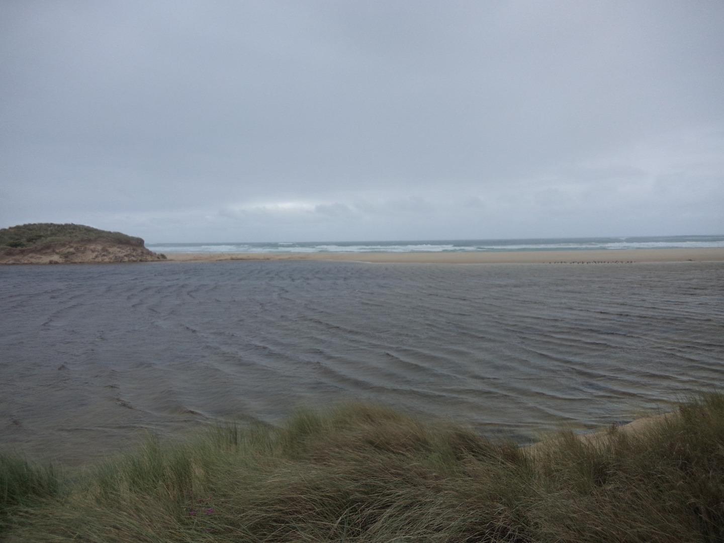 Tom Sheehan co-monitor. Hooded Plovers, Swans. Signs of sea inundation. Estuary opened recently artificialy. |