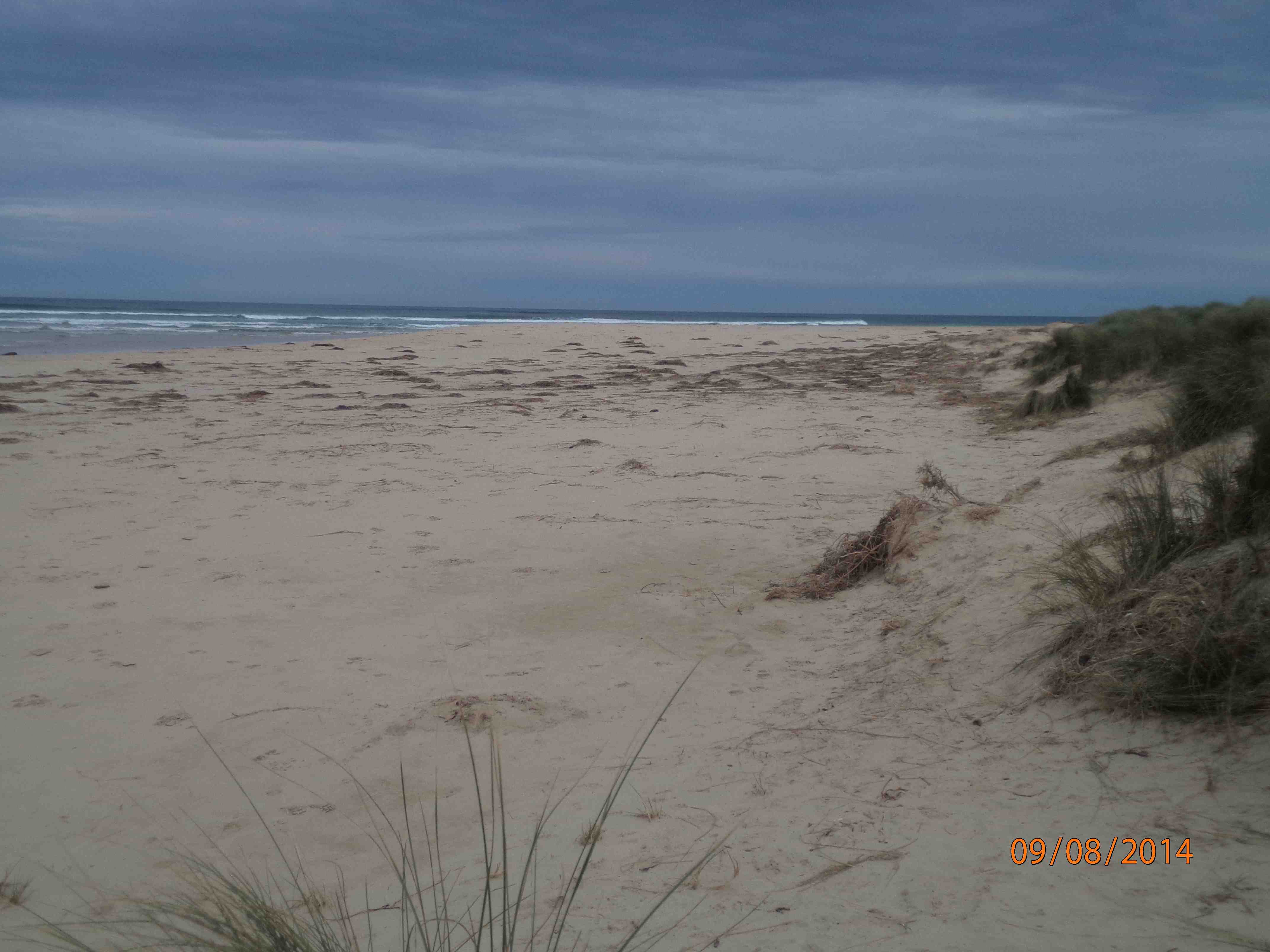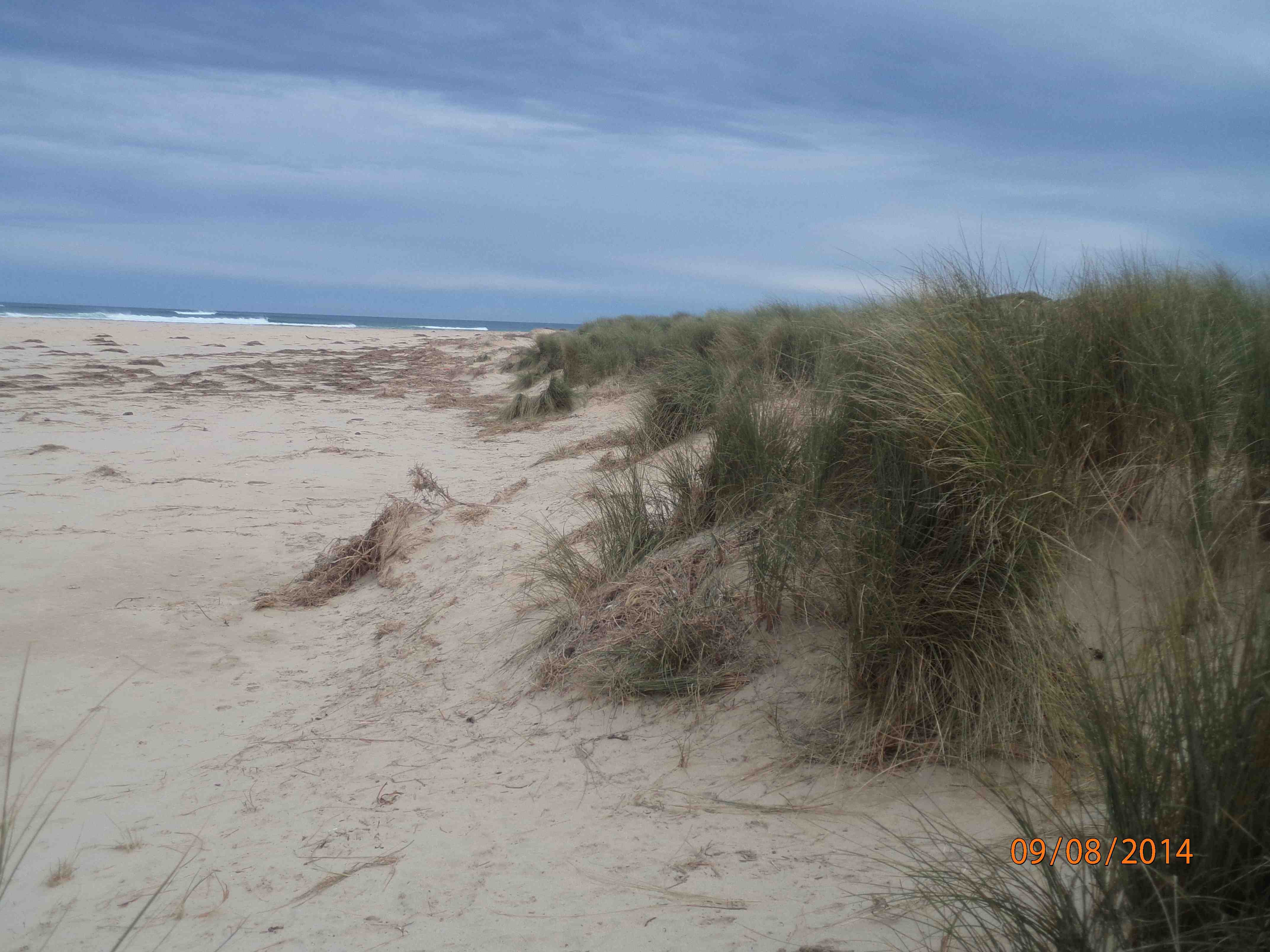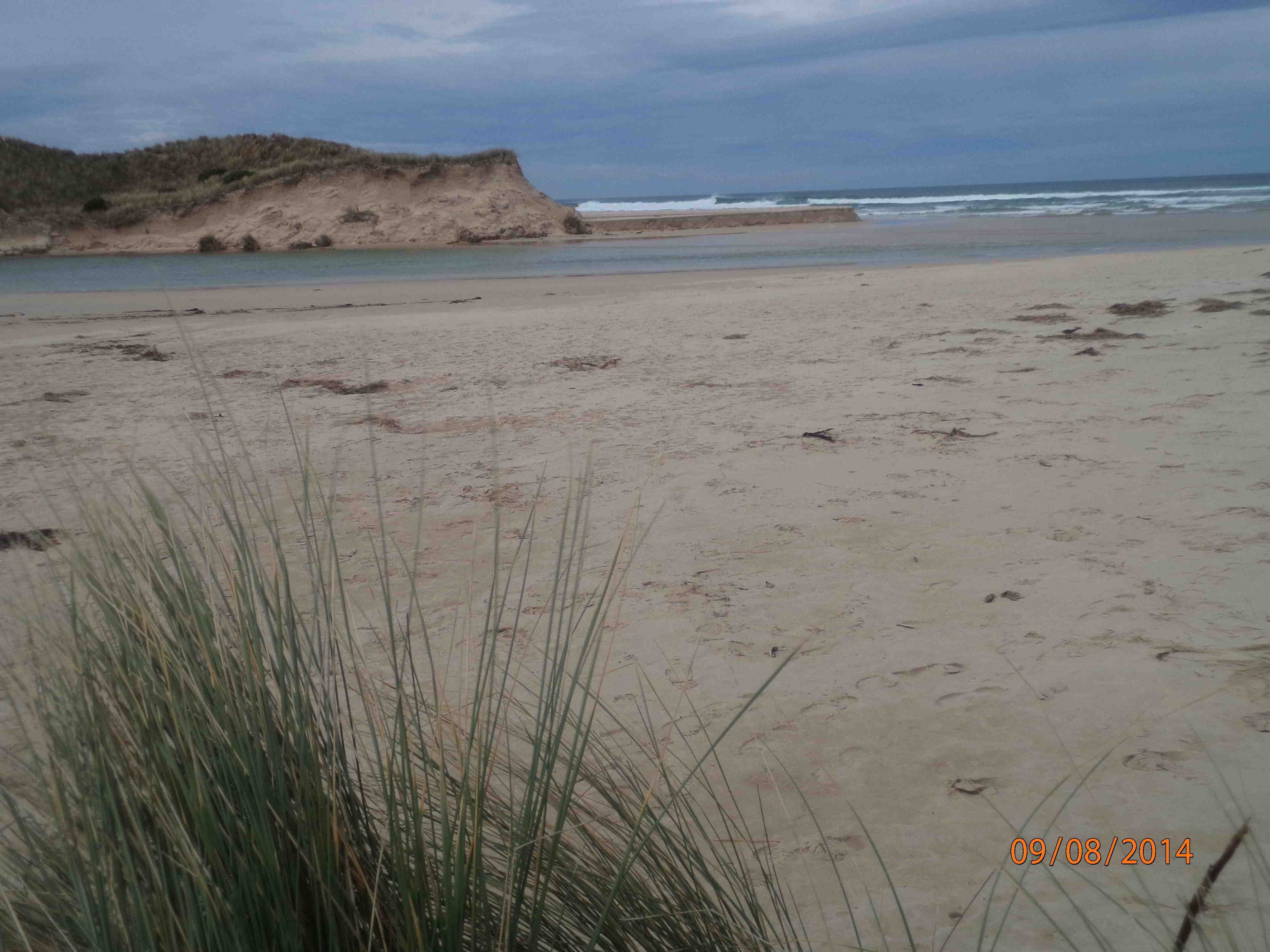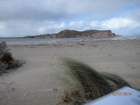 Severe erosion on intertidal and dune system. No berm reading as fresh and sea water meeting. Saltwater action from tip of eastern headland to just below dunes was very broad. Photos on camera show extent of erosion. Main dune has receded by approx two metres. Sea weed and coastal grasses deposited among dunes. ps.. Extreme weather event 24th June 2014 |