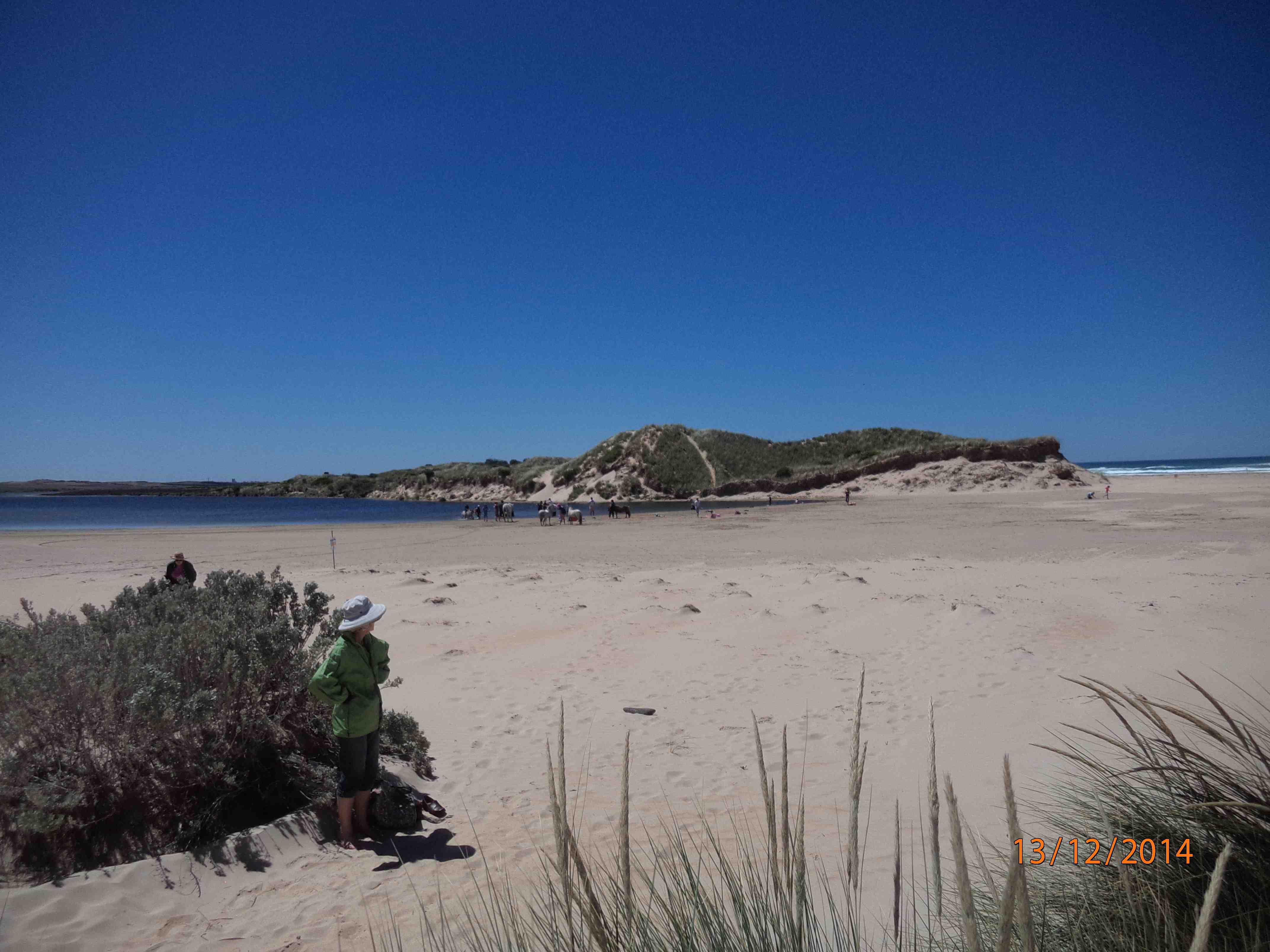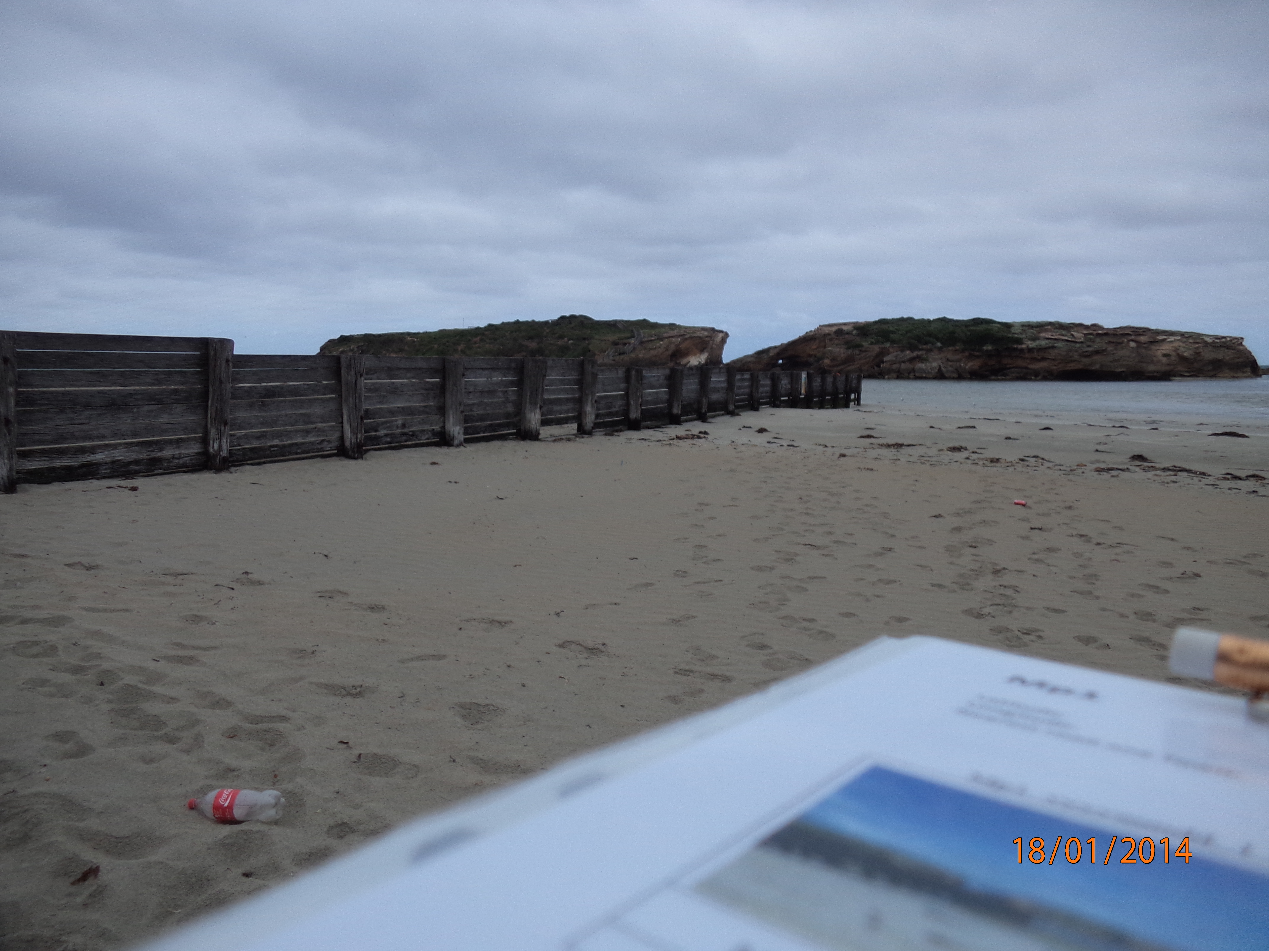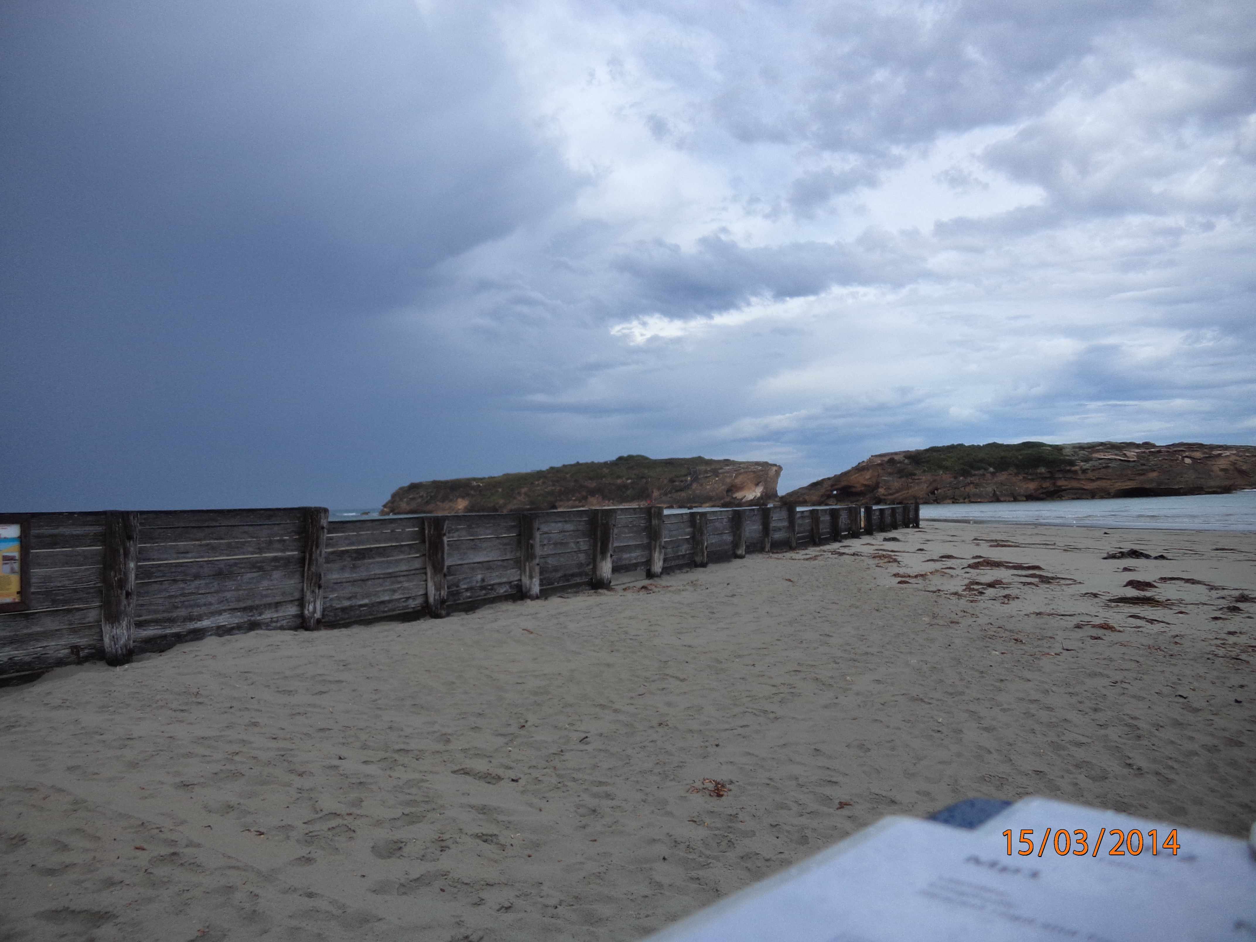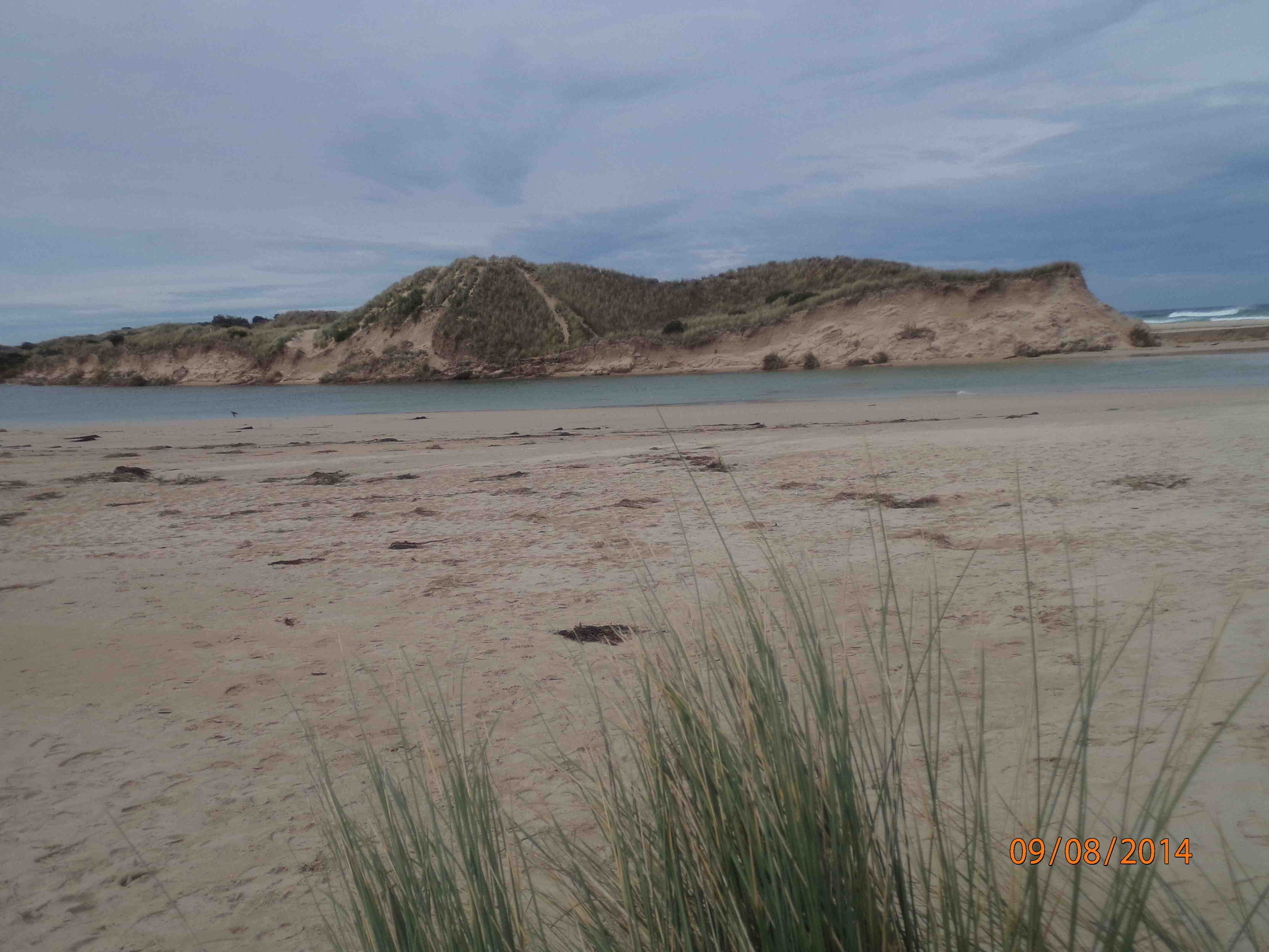 Severe erosion on intertidal and dune system. No berm reading as fresh and sea water meeting. Saltwater action from tip of eastern headland to just below dunes was very broad. Photos on camera show extent of erosion. Main dune has receded by approx two metres. Sea weed and coastal grasses deposited among dunes. ps.. Extreme weather event 24th June 2014 |