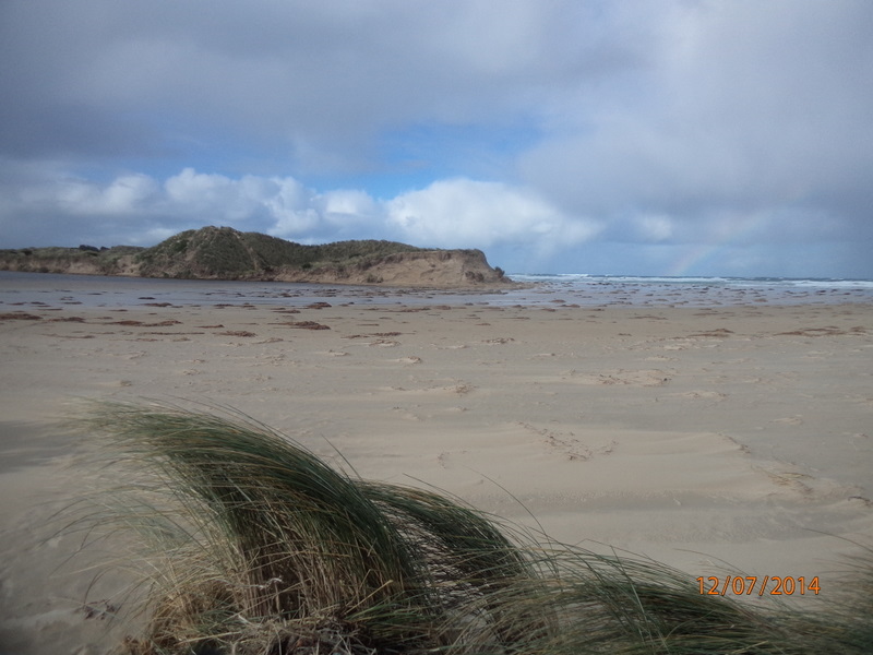 Light rain showers Flock of Hooded Plovers on beach 1 dead Shearwater (Mutton Bird) near carpark |