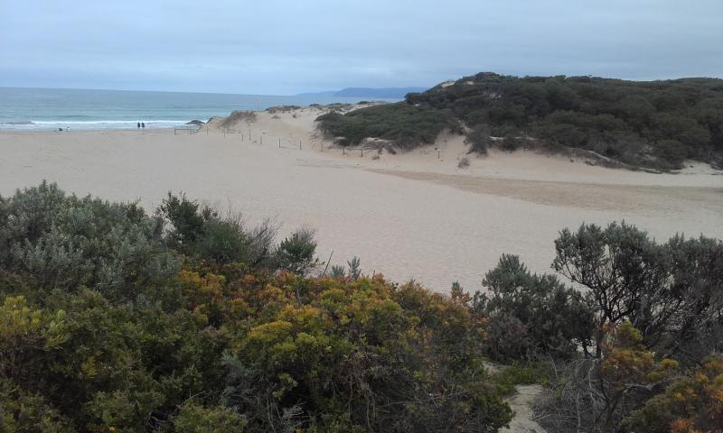 Height of berm unable to be measured as horizon/sea could not be seen from estuary. Berm width - 140m