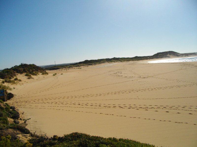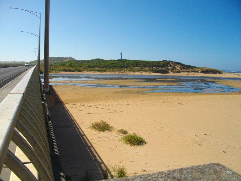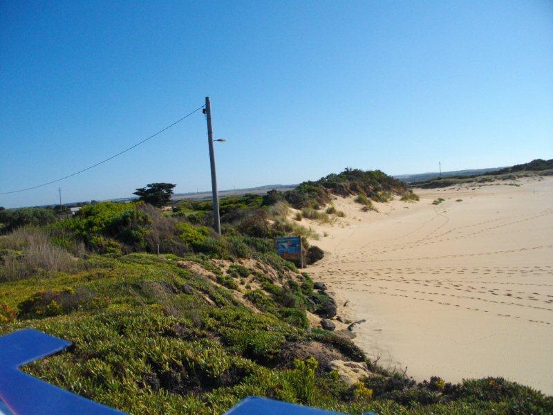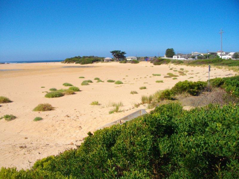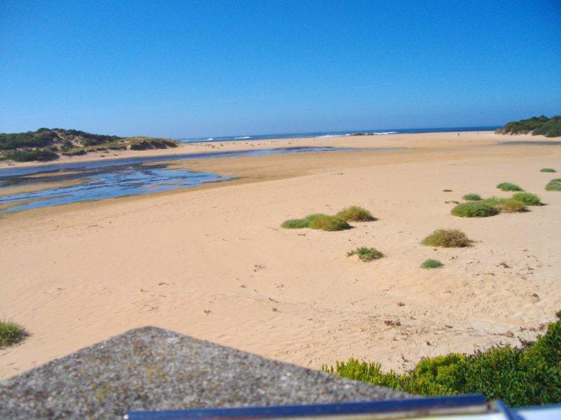 Ocean not visible over berm. Measured to the top of "Day Dream island" . Using this method, the height of the berm above the estuary water level was 1.10m. The berm length was 152m.