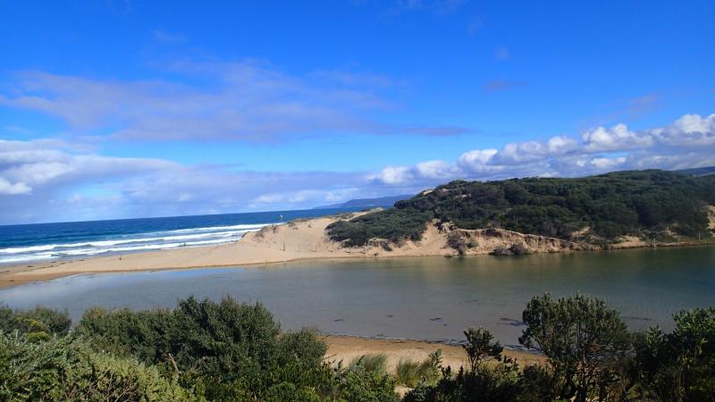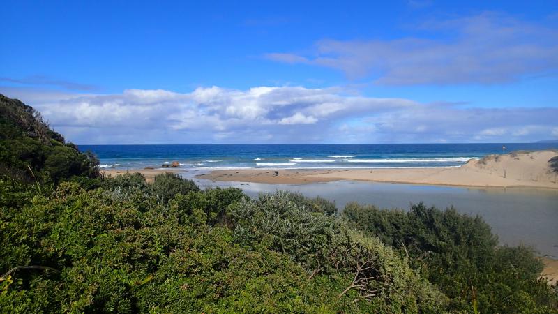 No berm measurement taken. Mouth appeared open, with water flowing out to sea over the sand. No channel to speak of, and some over-topping inwards with bigger waves.