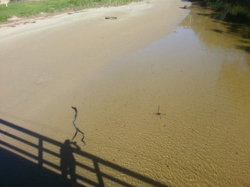 2. Sand bank visible around water level measure - photo for reference taken from the Wye River bridge.