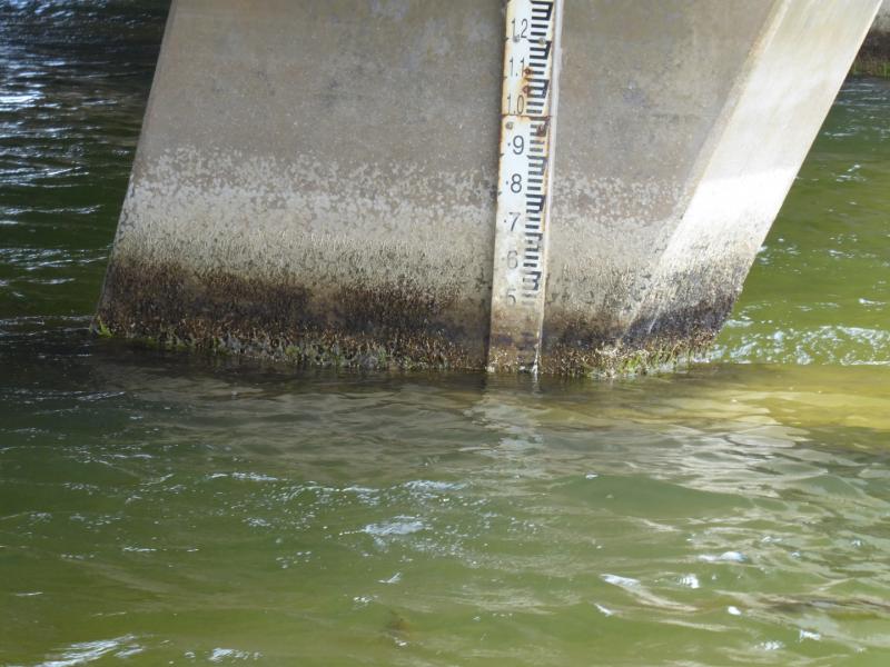 Height gauge dirty at water level. Height scaled from photo.