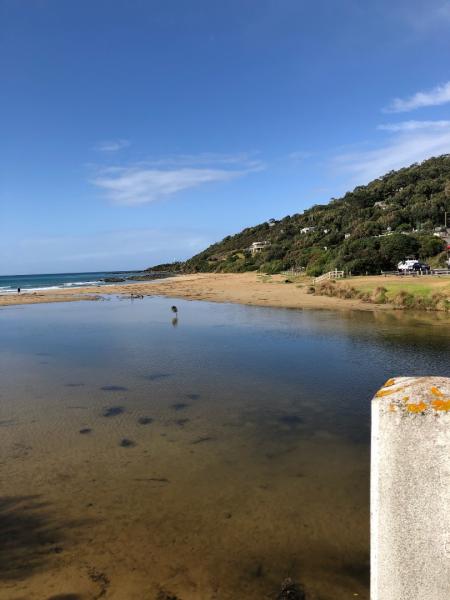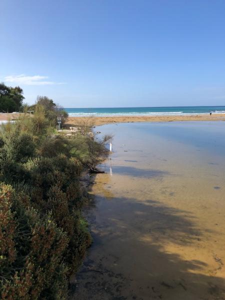 -a large pond had formed between bridge and half way down the beach. the mouth was only just open.