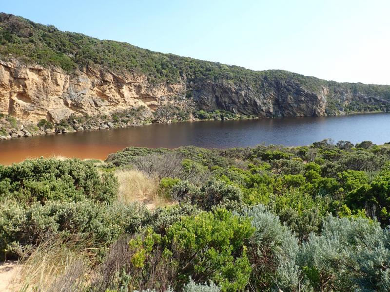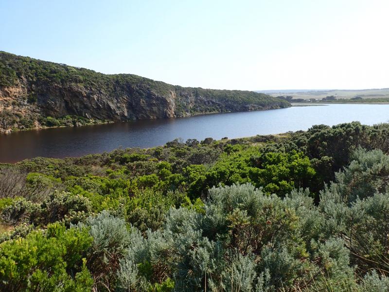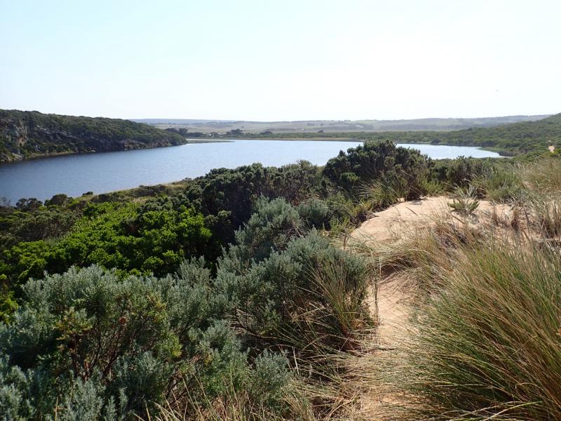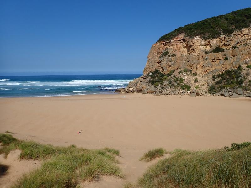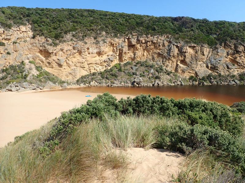 AHD G6 1.46 @ 10:18 Observations taken at low tide. Mouth closed but waves have been up to the estuary at last hi tide. Sand high all along the beach. Water is across all of low track