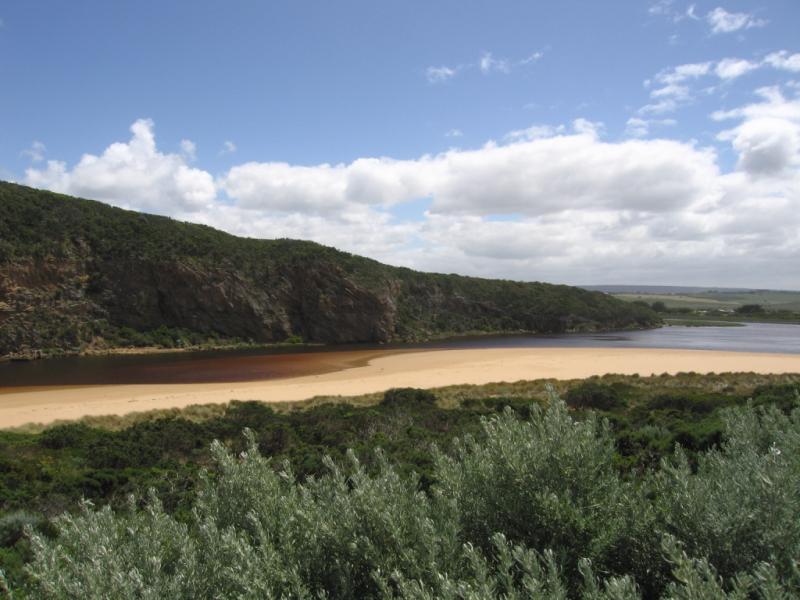 River nearly closed on the 13/11/08, reopen slightly 13/11/08, small 5-7cm fish around rocks at entrance. Fresh discharge along beach to the east, a lot of sand south of the mouth, waves coming in from the west.
