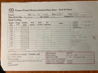 As the current was very fast, we only took two depth measurements as we did not want to risk damaging the probe. Maximum depth could not be ascertained.