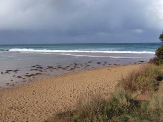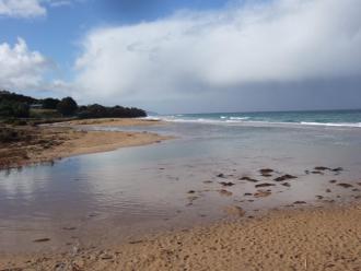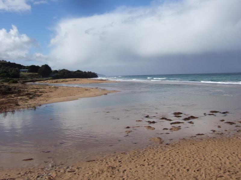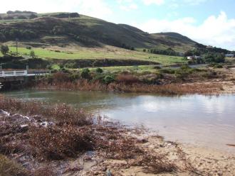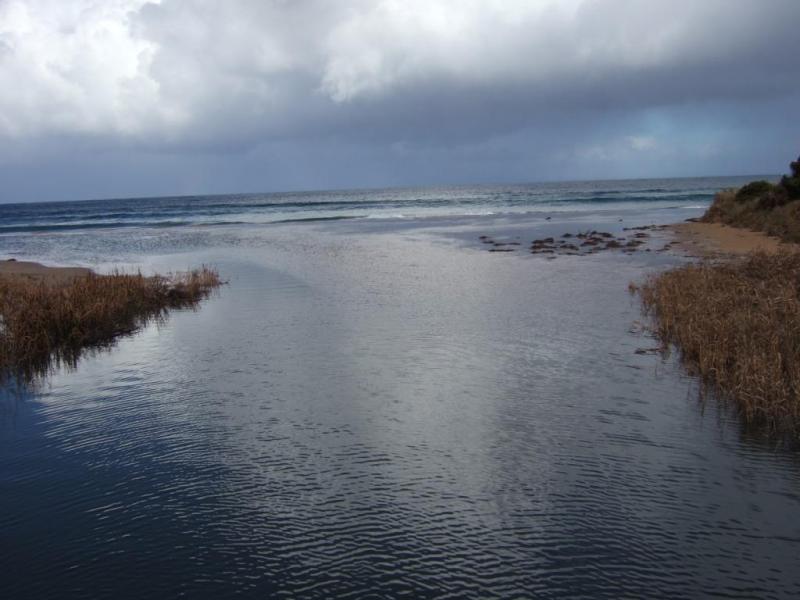 After briefly flowing out in a westerly direction, the river changed to its usual outlet about 250m from western end.