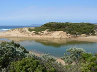 Water level below gauge board at bridge. Tide times PPH +1hr for dayligtht savings - 15 mins for Aireys Inlet