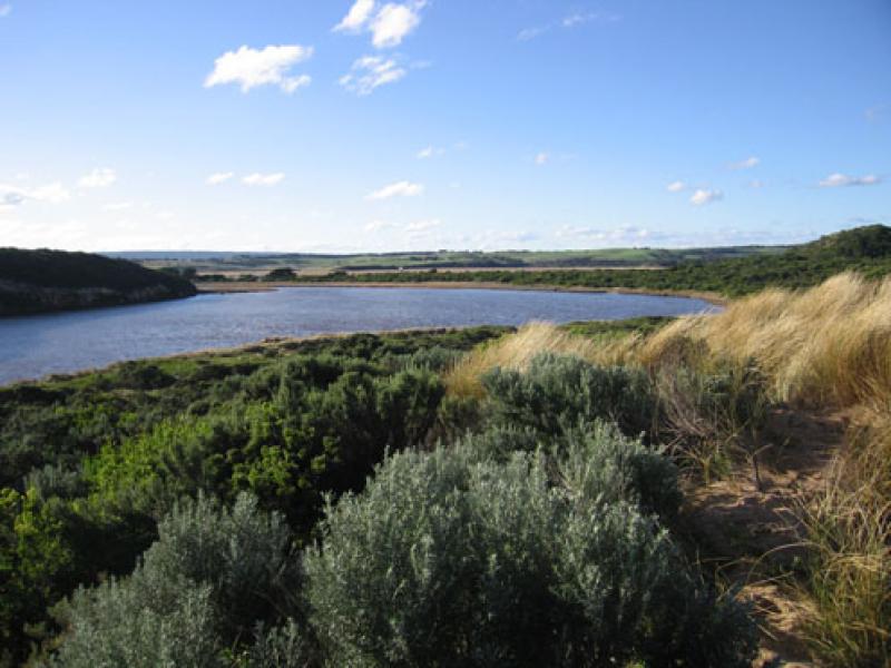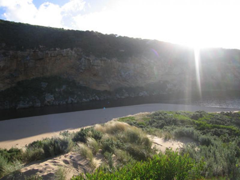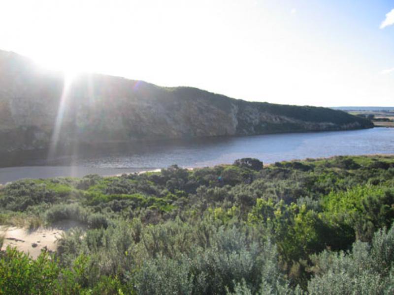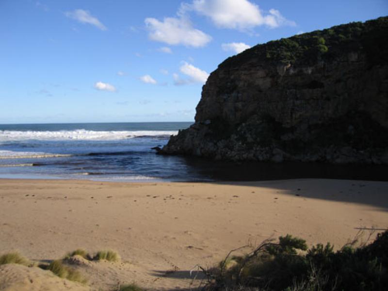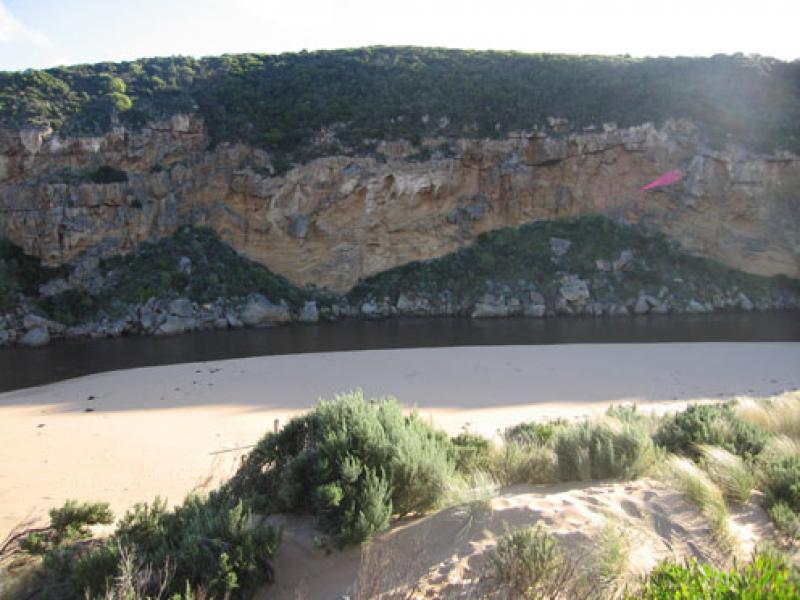 1.Discharge around mouth & to east & west 2. Channel wide about 15-20m & flowing strongly. East bank straight sided 1 to 1.5 m. high 3.Longshore drift back to mouth from mid beach 4.Large amount of foam & silt at eastern end of beach