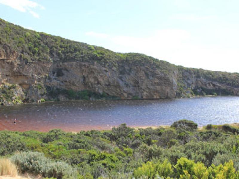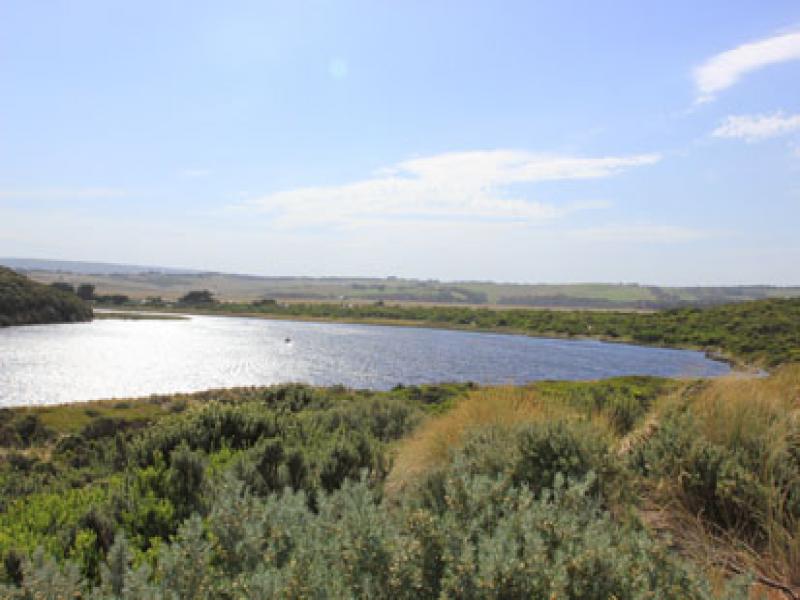 1.Mouth perched -sea entering over berm which has increased in height and width. Some return 2.Berm lower near cliff - about 1m. above water 3.River about 20 cm below berm 4.Waves going high up on beach. Swell wide spaced - waves up to 4m+