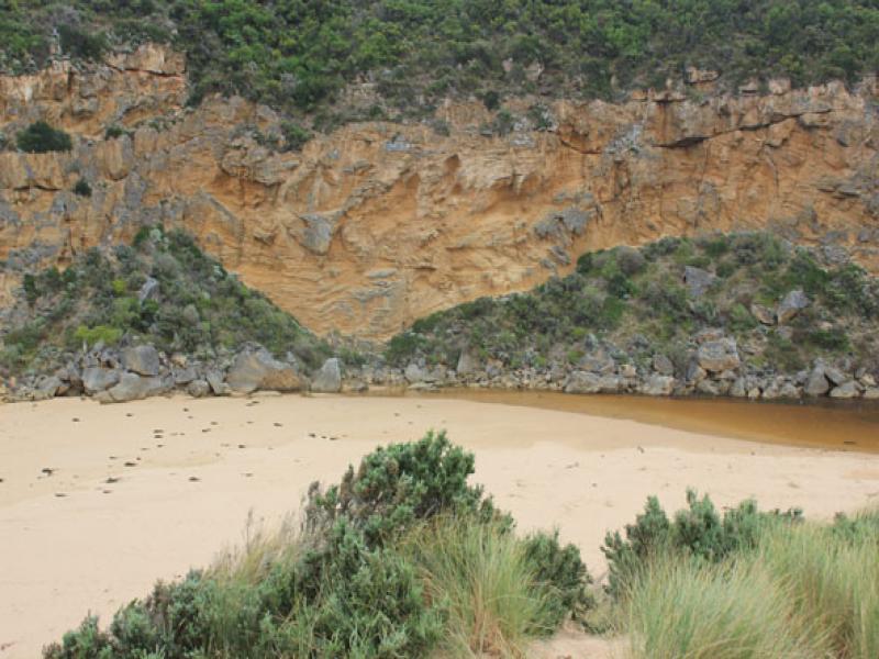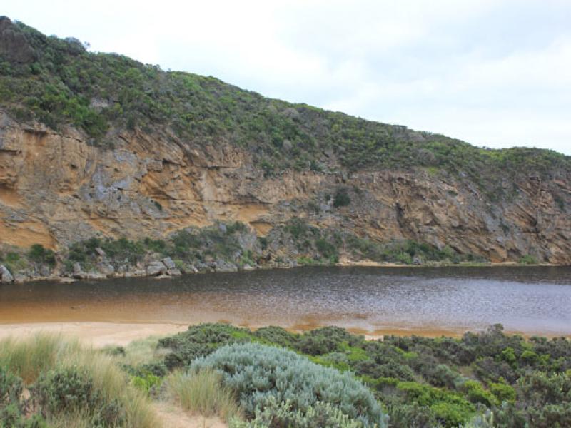 Mouth barred but waves over at last hi tide Rough sea & strong wing have increased the length of the berm More sand over rocks at entrance Ocean beach highest near mouth Water over low track increased in height & closer to carpark