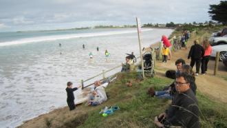 Two photos of high tide at Pisces car park West along the beach from Wild Dog