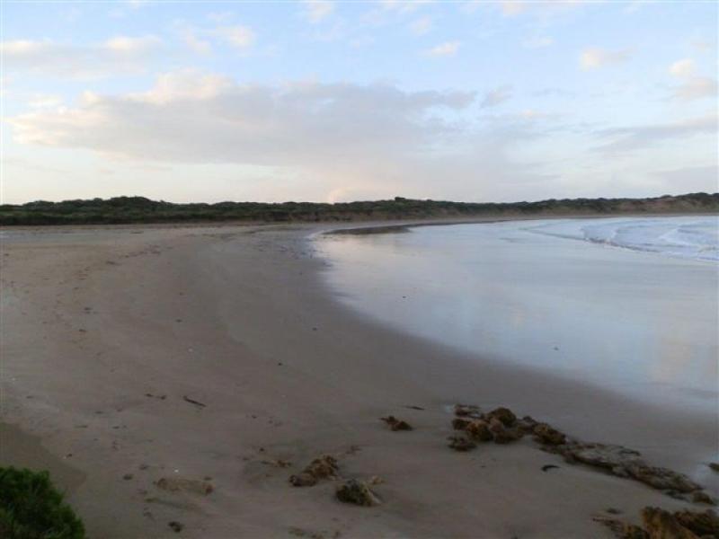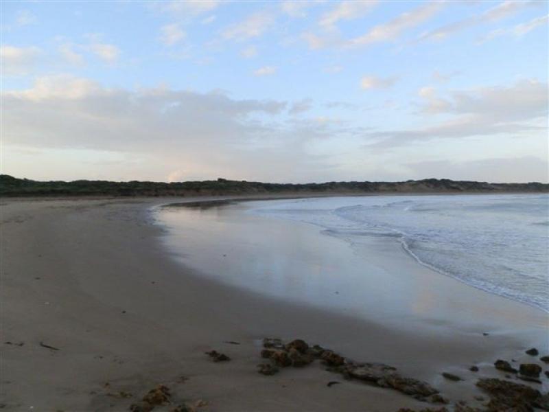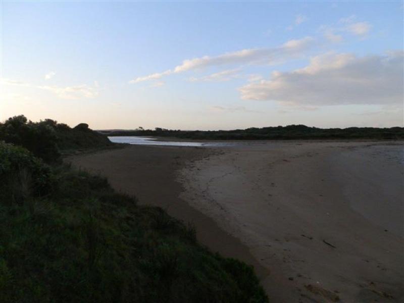 Berm fully closing the estuary Waders busy at waters edge 3-4 ft surf Strong flow in from mullett creek at the culvert after rain