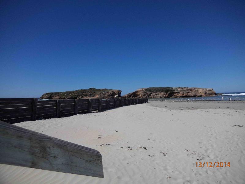 Tide about to turn. Gauge board illegible due to mud. Sea state bordering on moderate.