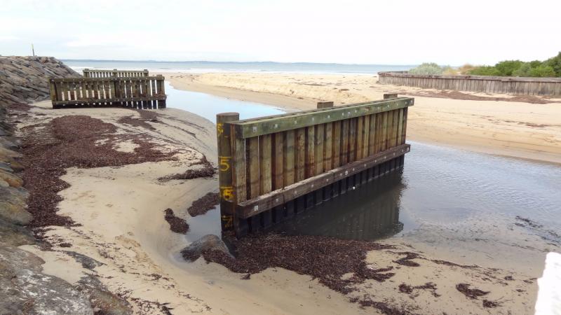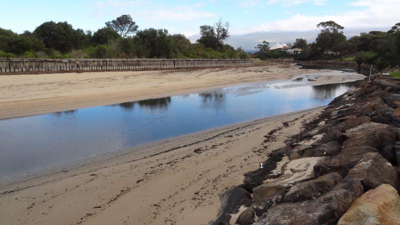 Creek broke through berm 01/06/2017. Neap tides have meant there has been little or no inflow at high tide. Creek water is inky black and smells very strongly of H2S.