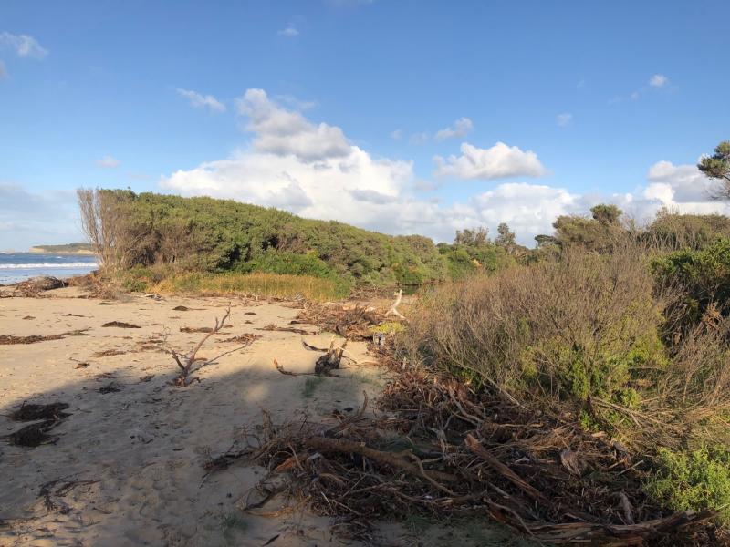 Sand berm height to difficult to measure as a result of tea tree debris and channel location.