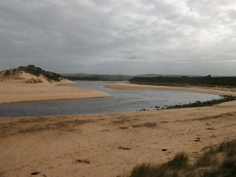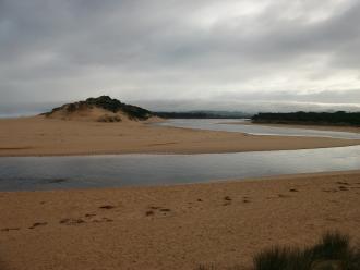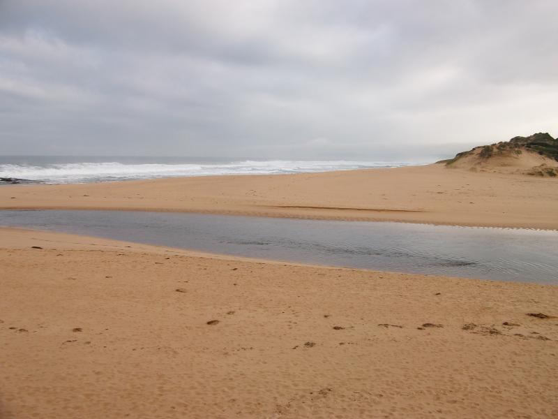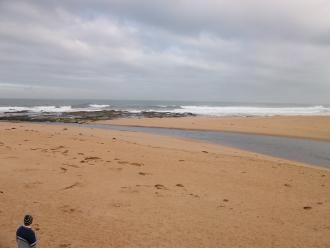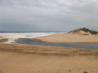 Big froth build up at the opening where the fresh water met the sea water. Froth blowing over the beach
