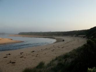 foggy morning fog cleared while photos were being taken. Powlett flowing strongly