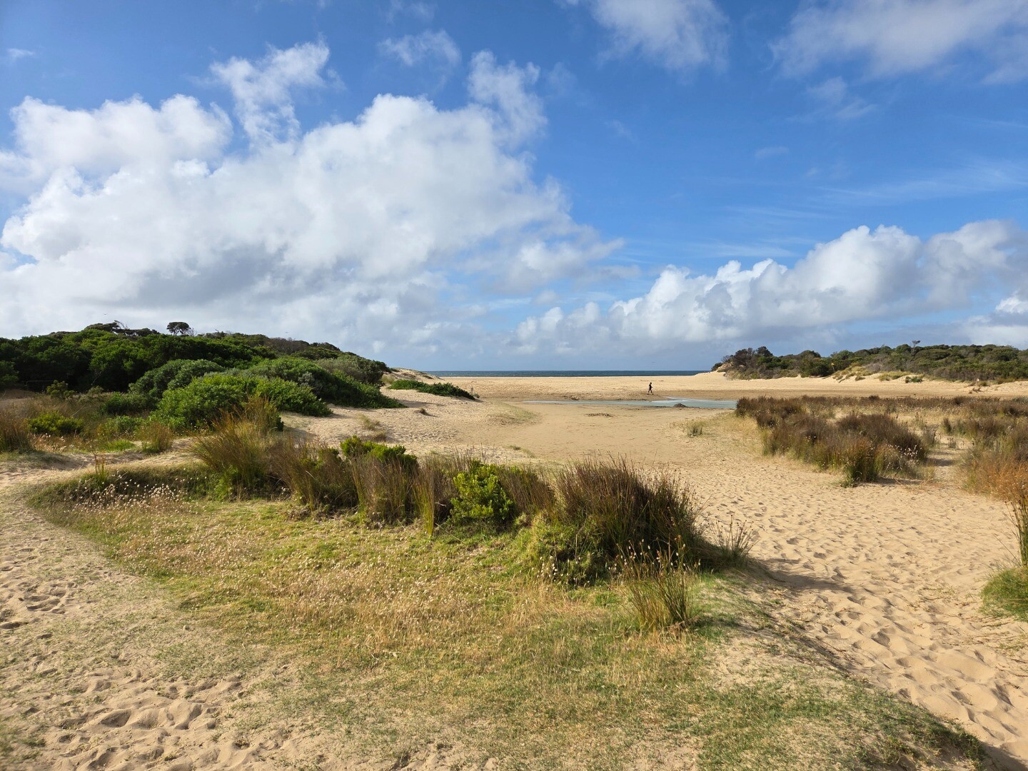 Small sand dune hillock on eastern side of estuary mouth| Date | Mouth state | Berm length | Conditions | Water Level Start Water Level End |
