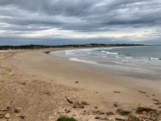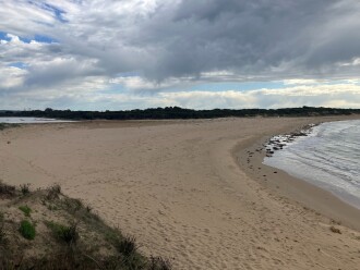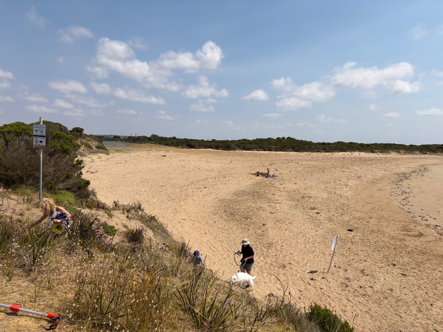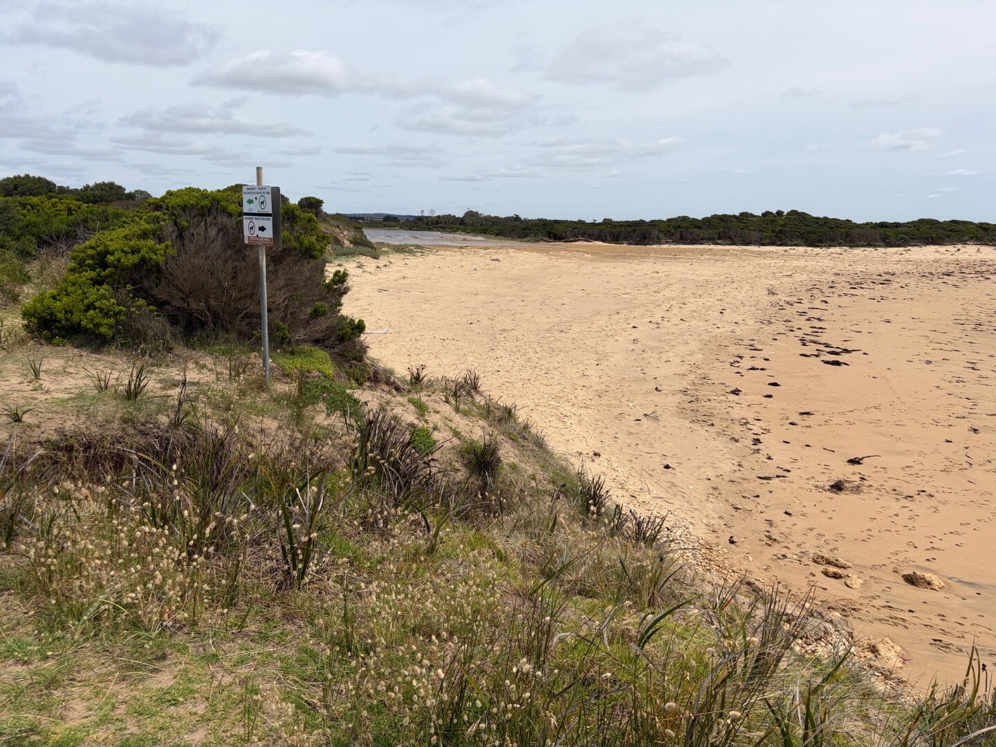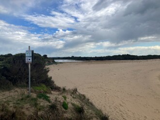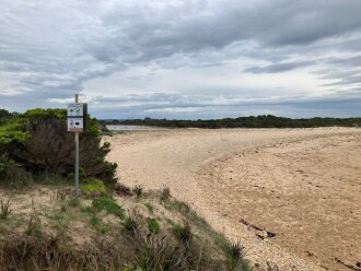 Grassy knoll on sandbank adjacent to car park at Point Impossible.| Date | Mouth state | Berm length | Conditions | Water Level Start Water Level End |