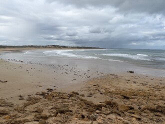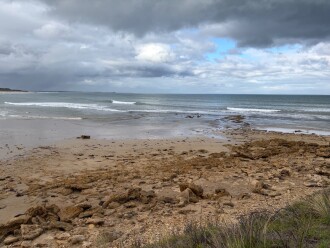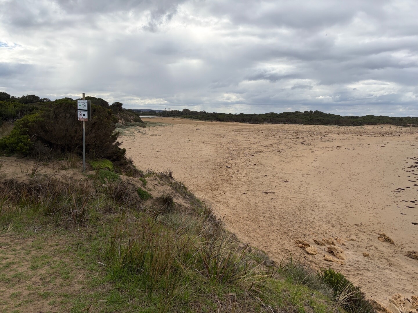 Grassy knoll on sandbank adjacent to car park at Point Impossible.