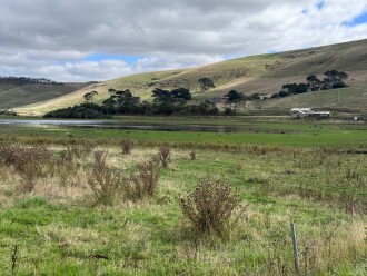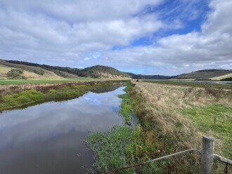 EstuaryWatch post marker on top of sandune at estuary mouth