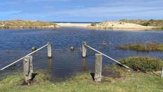 Enter via walking track from the carpark at the corner of Gambier and Trafalgar Street.