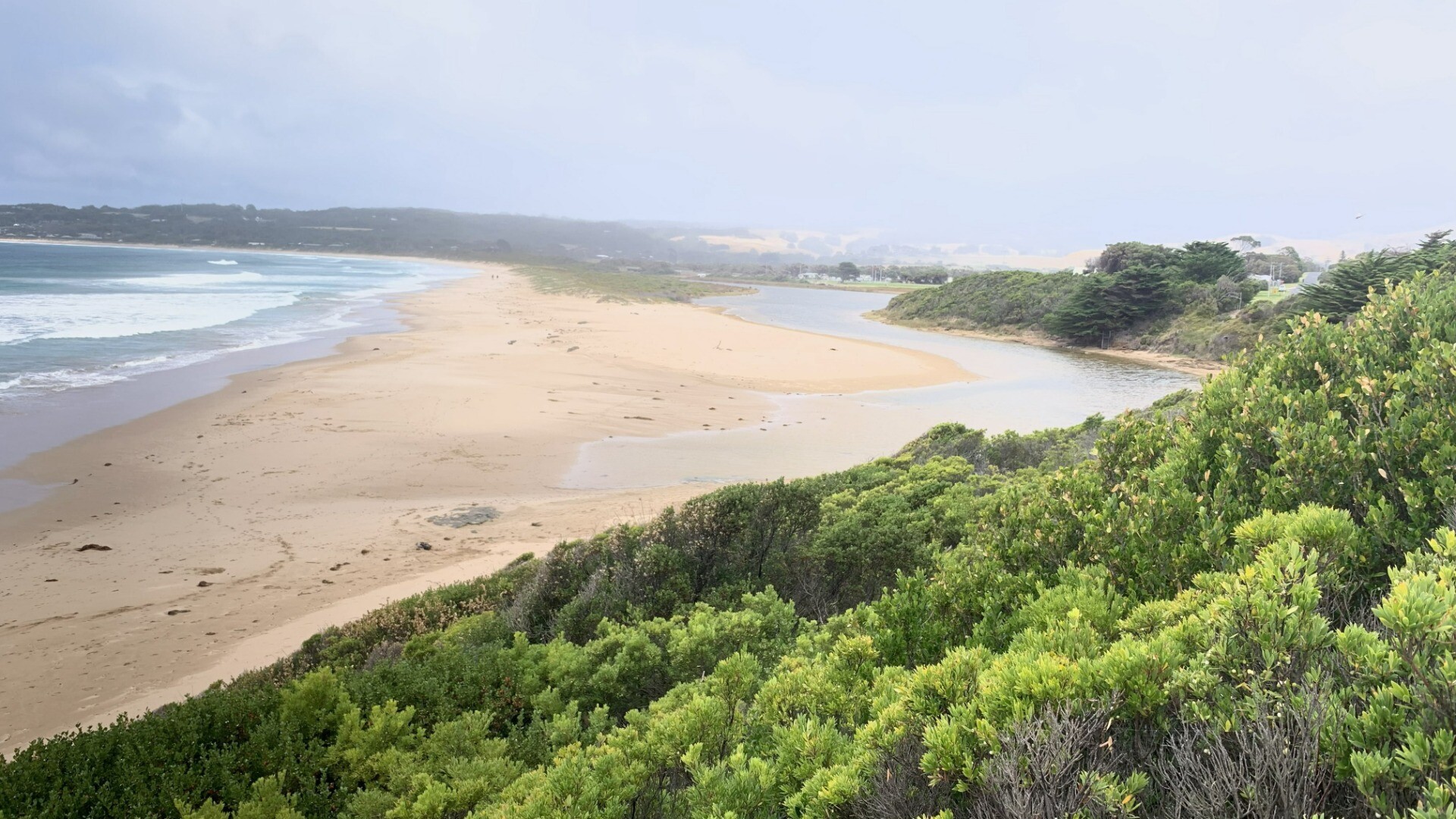 In front of the photopoint site is coastal scrub. behind the photopoint site is the golf course.