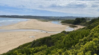 Enter via walking track from the carpark at the corner of Gambier and Trafalgar Street. Follow the track to the 6th hole of the golf course.