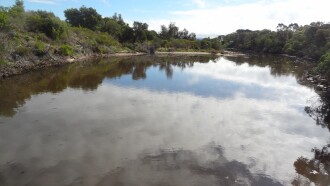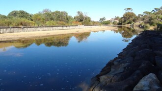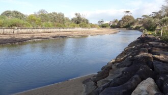 Park along The Promenade, Somers. There is a beach access track that will take you to the mouth of the estuary.