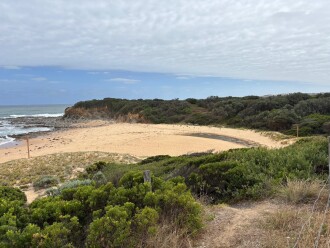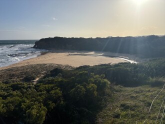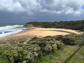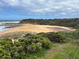 From the carpark located on the eastern side of Bourne Creek, follow the stairs onto the beach and head west towards the estuary mouth.