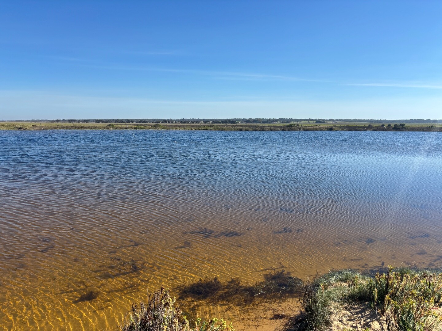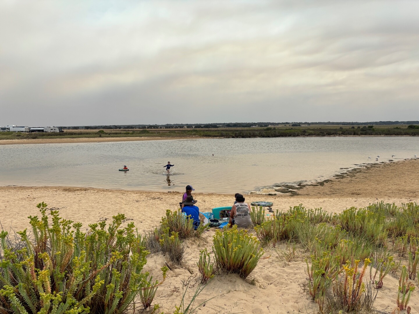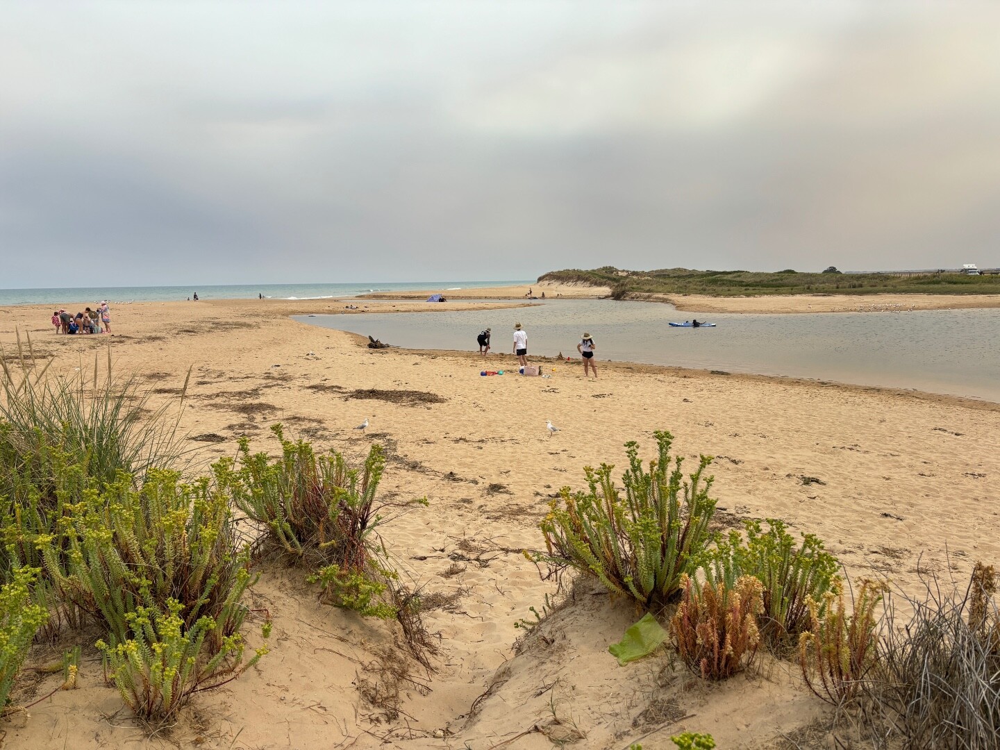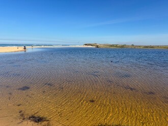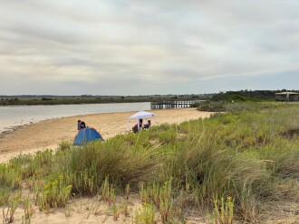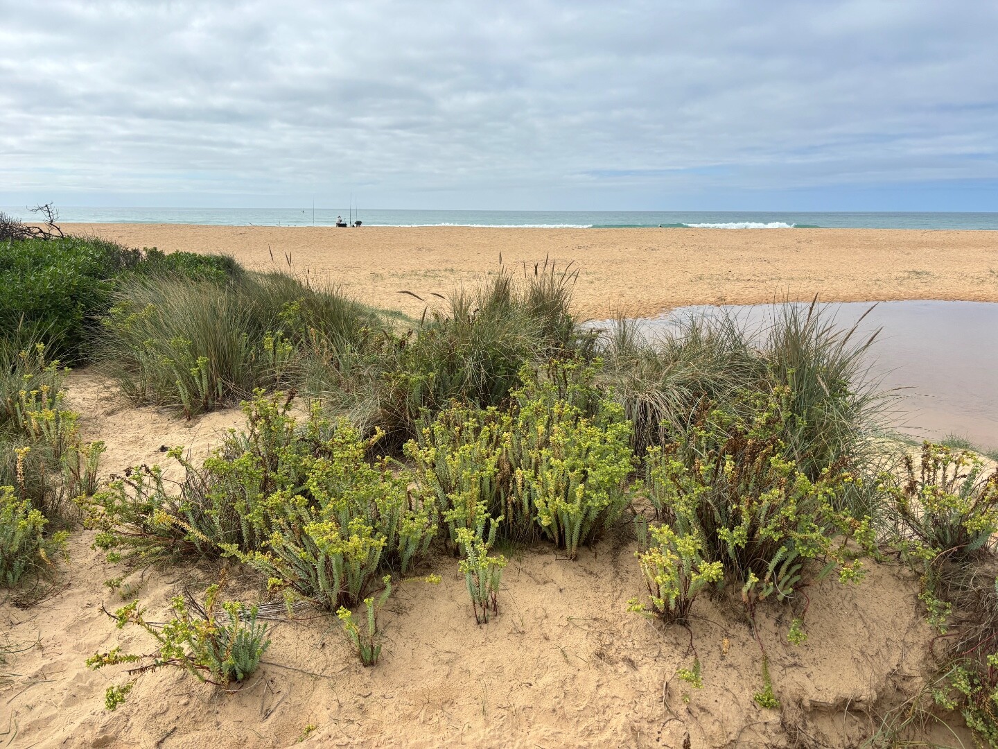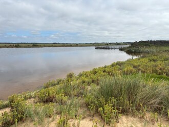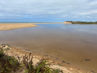 See photo attached - this site is located at the point of the foredune where the creek meets the beach. This provides some height in order to capture how the estuary mouth is moving over time. This estuary is strongly wave dominated